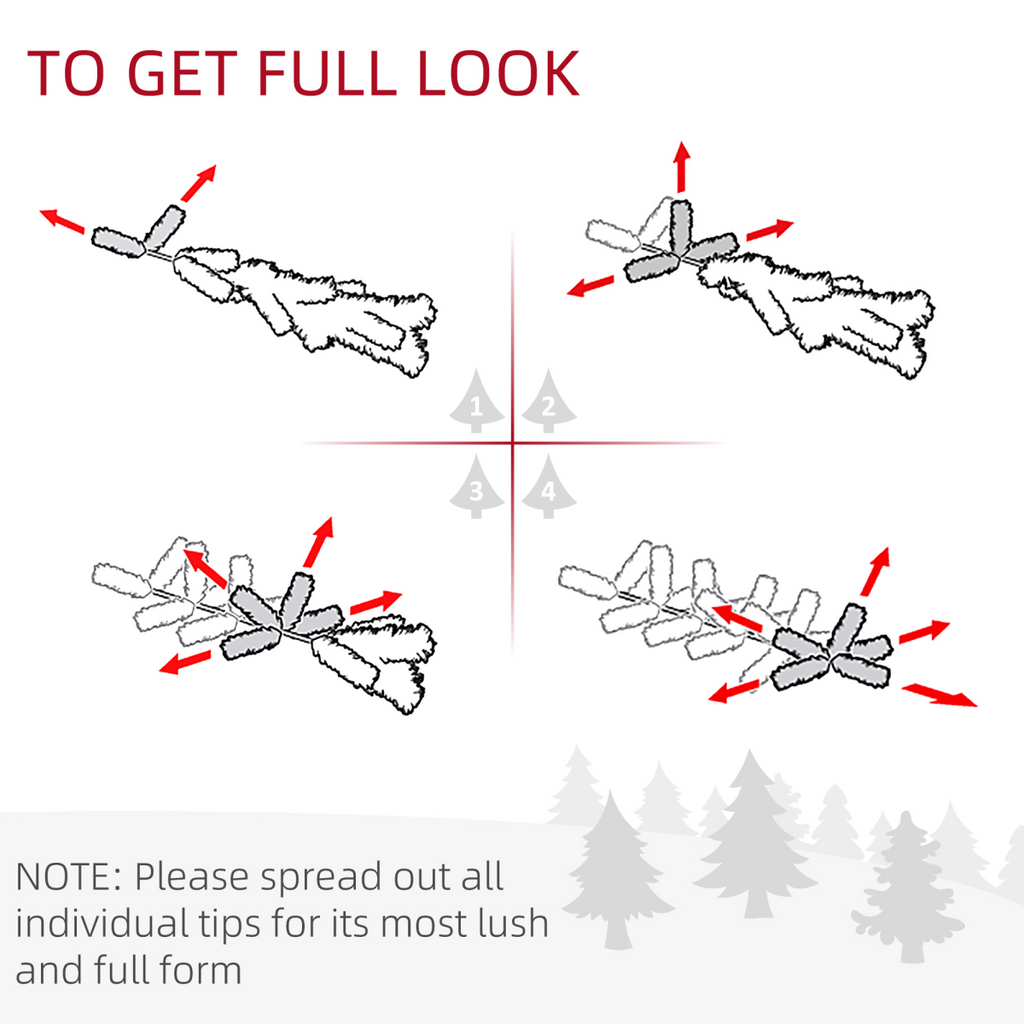 - 1.2m 4ft Christmas Tree Entrance - 750 Tips Pre-lit Tree 80 LED with Vase Base Description: - Pine styled tree stands up to 120cm/4ft tall with 62cm diameter - Made of dense needles with 750 branches to appear natural and full to last all season - Pre-lit with 80 energy efficient LED lights add warm and cozy atmosphere to your holiday - Seated in a decorative plastic vase base for added elegance - Easy to assembly and dissemble for storage - Perfect for indoor decor at Christmas, foil the festival atmosphere - RECOMMENDED SETUP: For the fullest results, work from bottom to top spreading every branch in a spiral motion