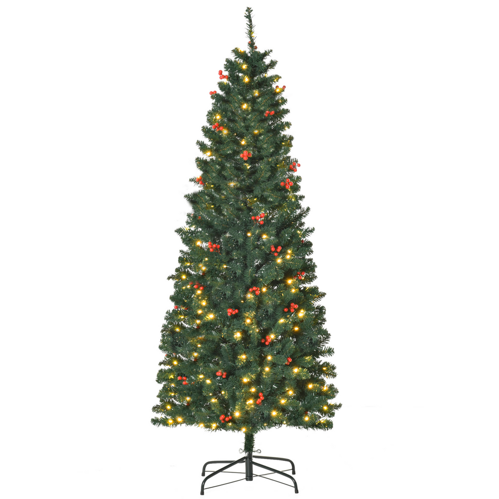 6FT Prelit Artificial Pencil Christmas Tree Warm White LED Red Berry Green