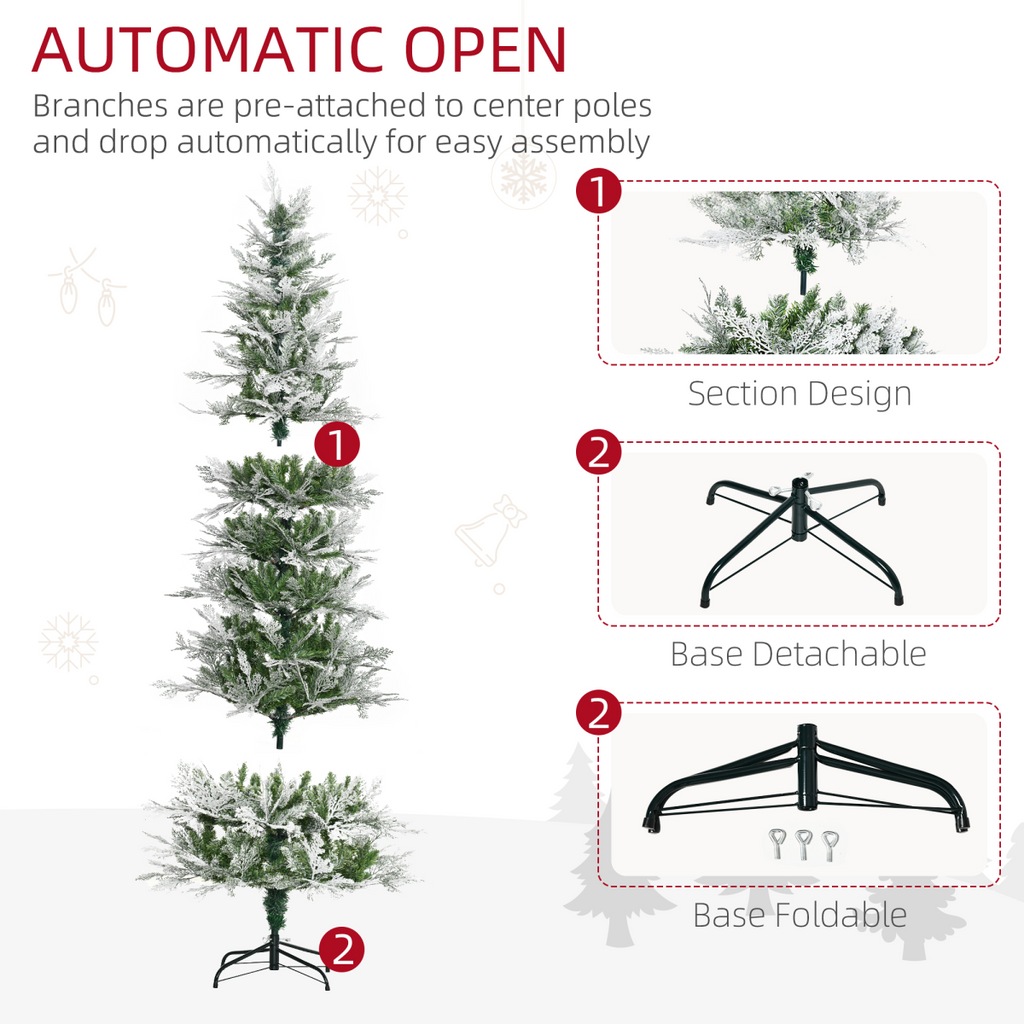 7 Foot Snow Flocked Artificial Christmas Tree Holiday with Pencil Shape HOMCOM
