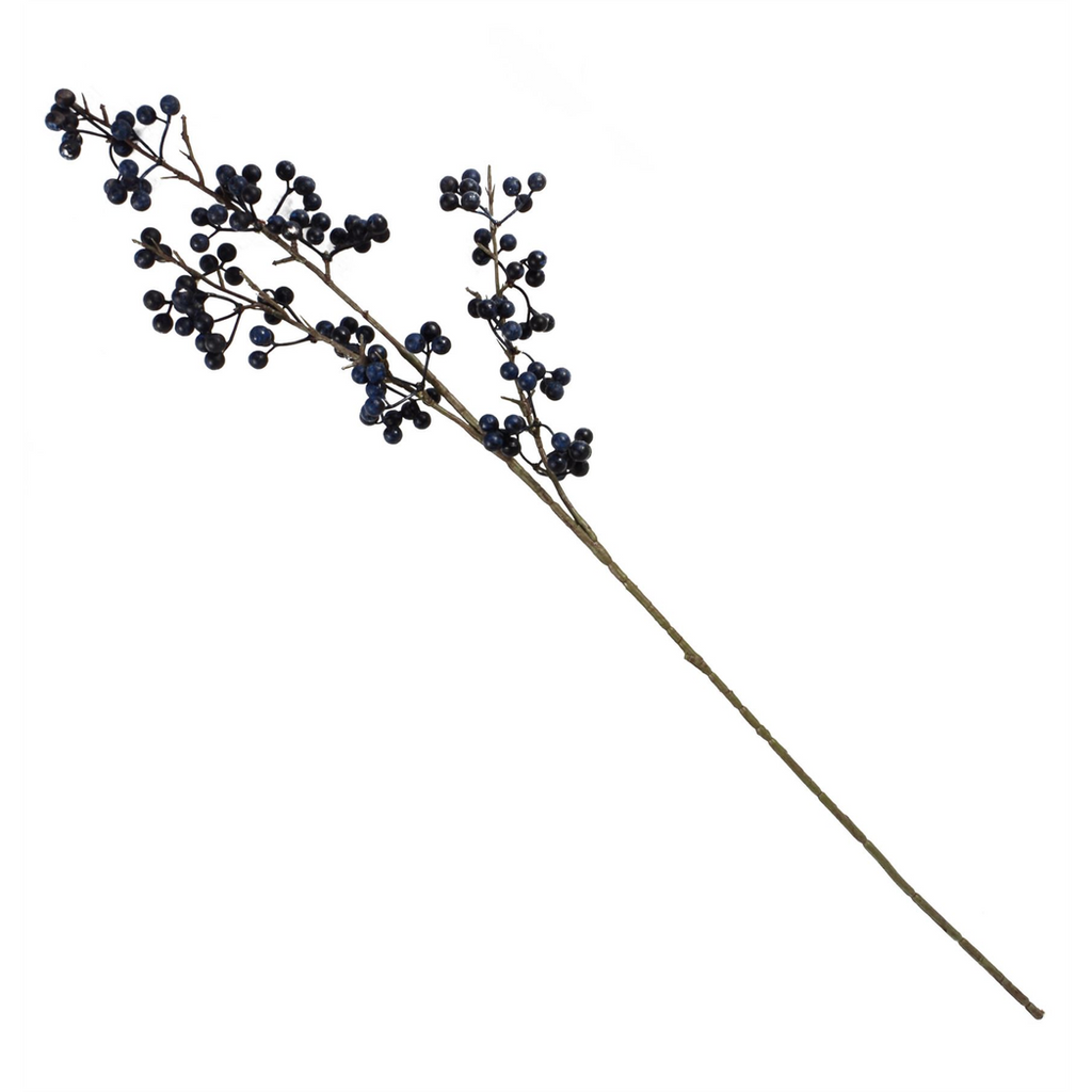 70cm Artificial Blue Christmas Berry Spray. Single stem 70cm measurement from end to end when flat - these can be combined in groups to make the display pictured in our example. Stems are wired and can be shaped to suit your space. This is a bare stem plant supplied unpotted. These can be put inside a planter (see our example images) or combined with other plants for a larger display. No planter is included with this plant. Realistic artificial replica of a berry stem. No maintenance required, ideal for low light areas in your home. This is a single stem only - if you need a group please purchase more than one.