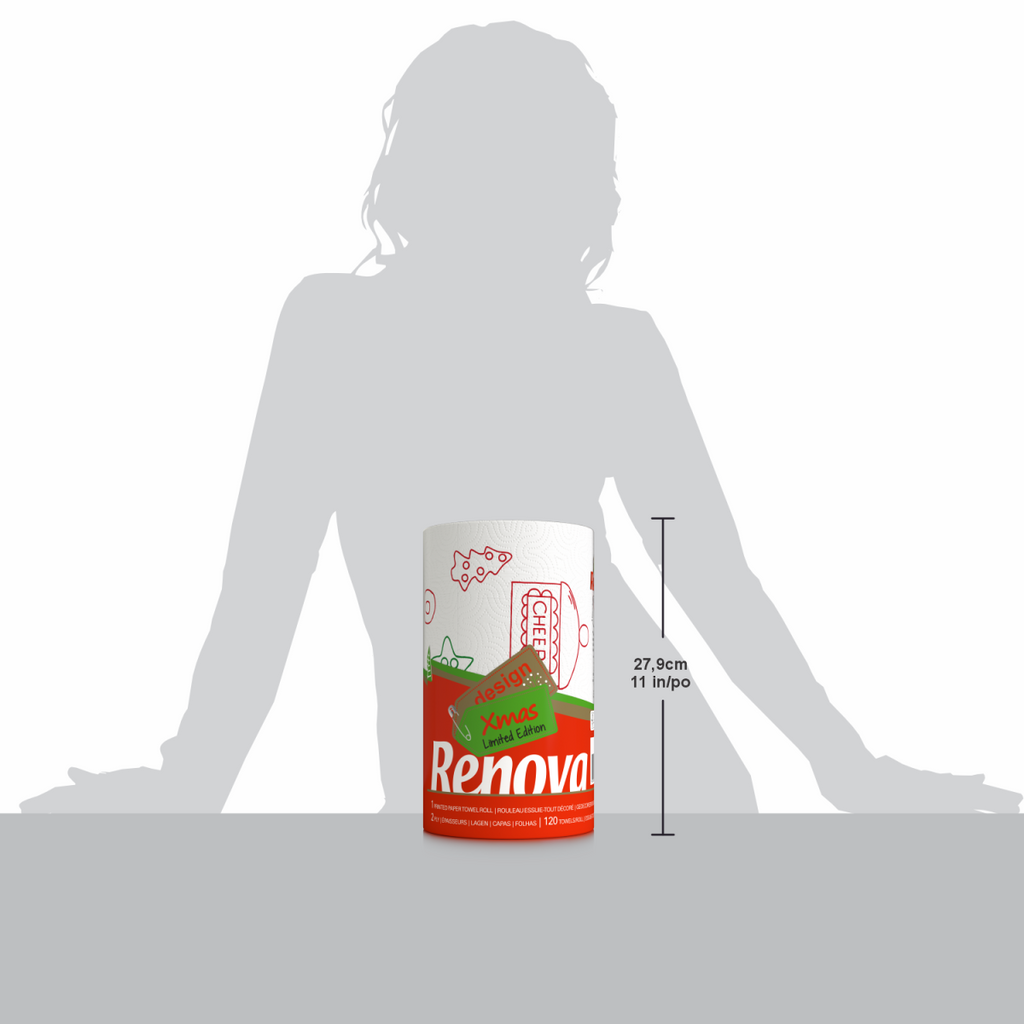 EXTRA-LARGE SIZE FOR DURABILITY: Each XXL roll is three times the size of a standard Renova kitchen roll, providing extra durability and longer-lasting use during the busy holiday season.