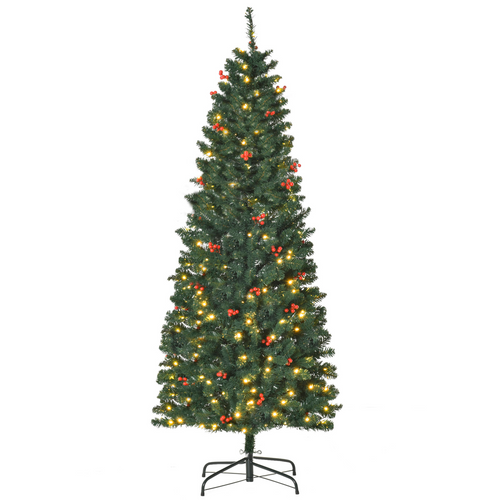 7FT Prelit Artificial Pencil Christmas Tree Warm White LED Red Berry Green £92.75