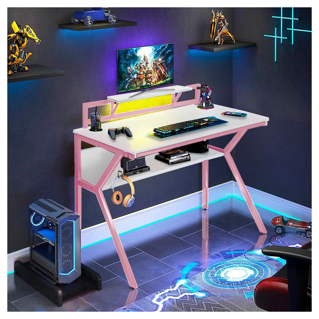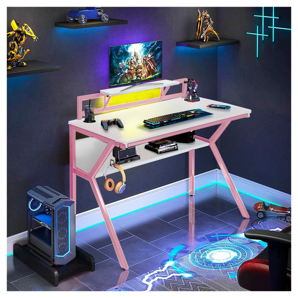 Neo Pink Ergonomic 2 Tier Gaming Computer Office Desk