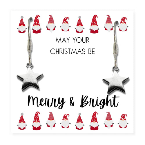 Silver Star Earrings - May Your Christmas Be Card Gift