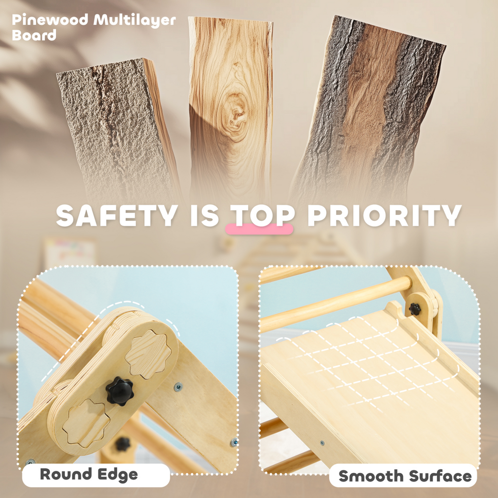 ● Foldable design of the climbing triangle allows for easy storage and adjustable play angles