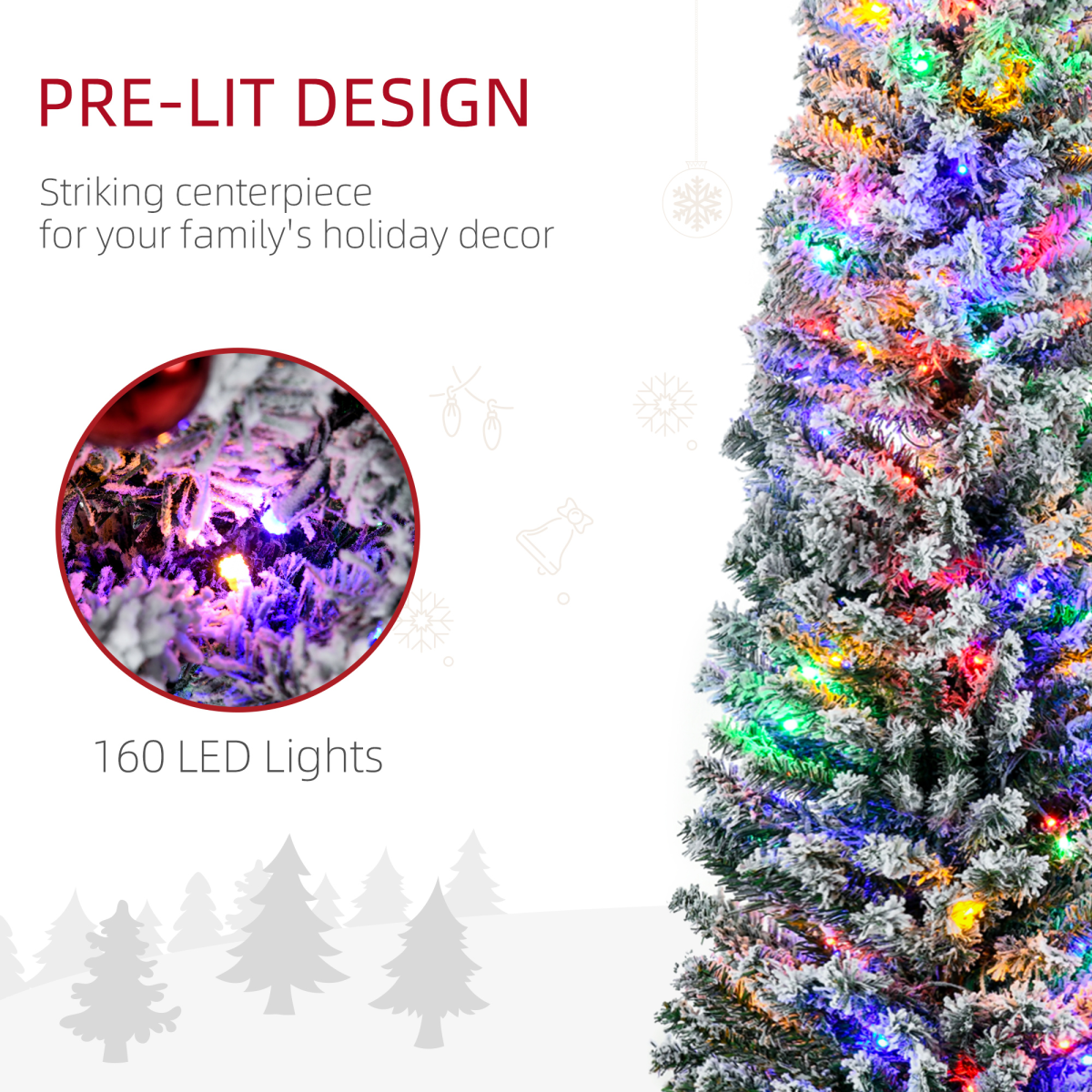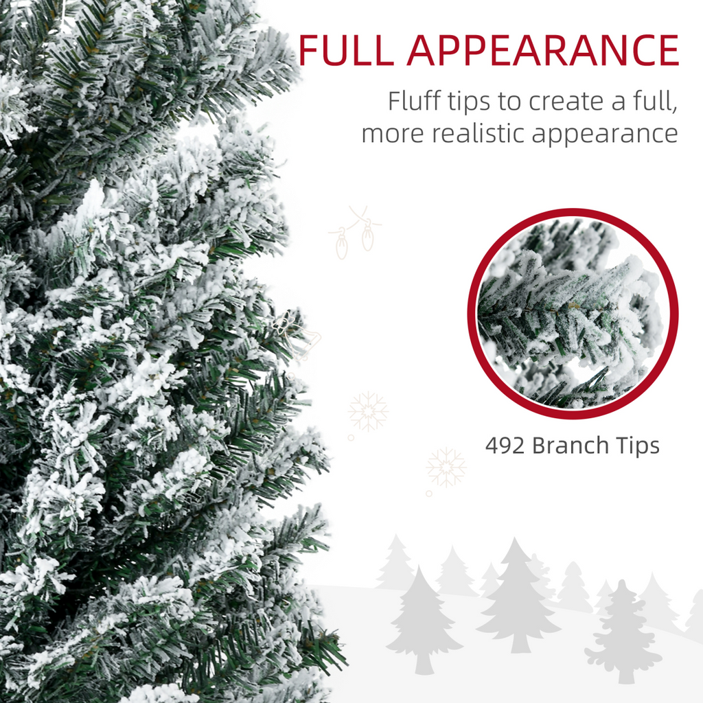 HOMCOM 6' Artificial Christmas Tree with Flocked Tips, LED Lights, Decoration