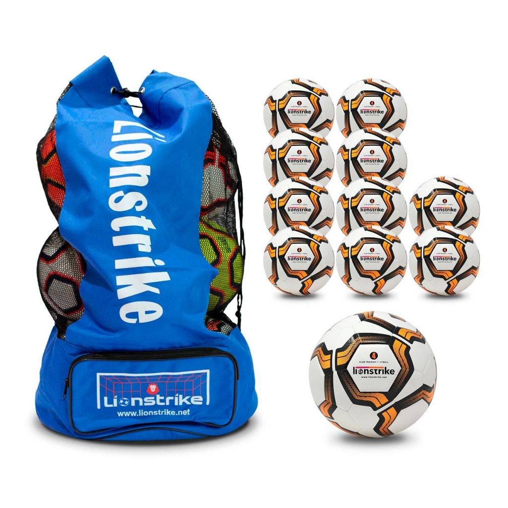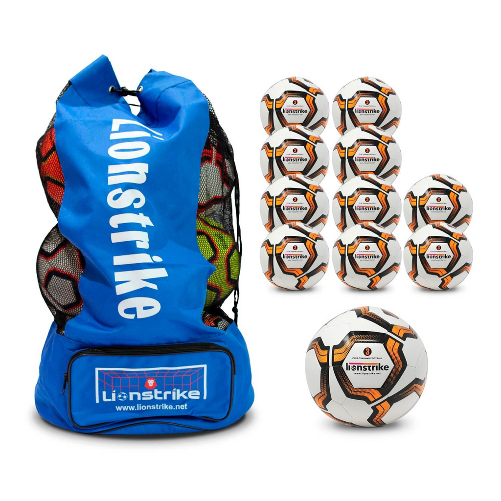 10x Lionstrike Club footballs, plus Lionstrike football sack.