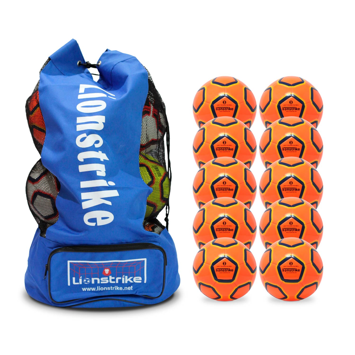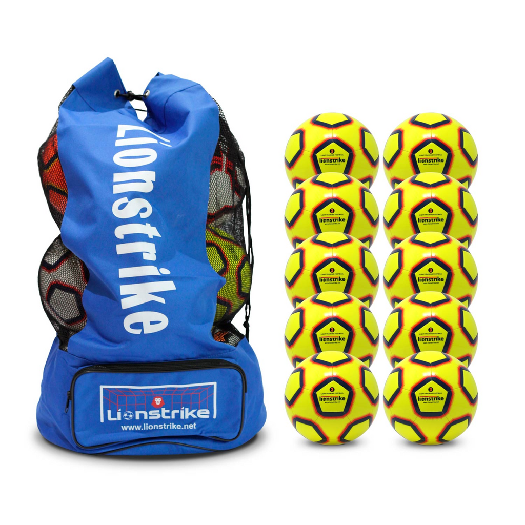 You can now buy a high value multipack of Lionstrike Lite Training Footballs, which includes the footballs and also a high quality Lionstrike football sack in which to store them.