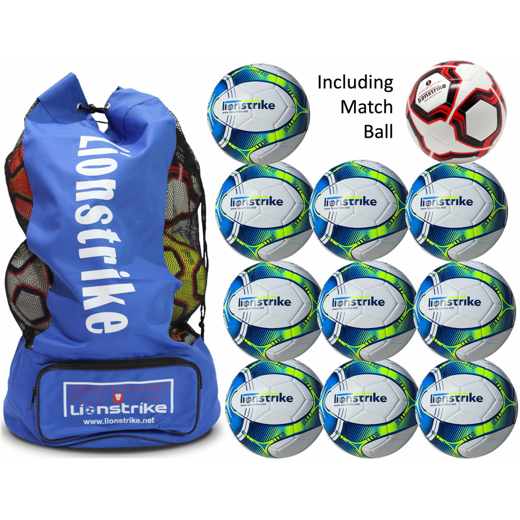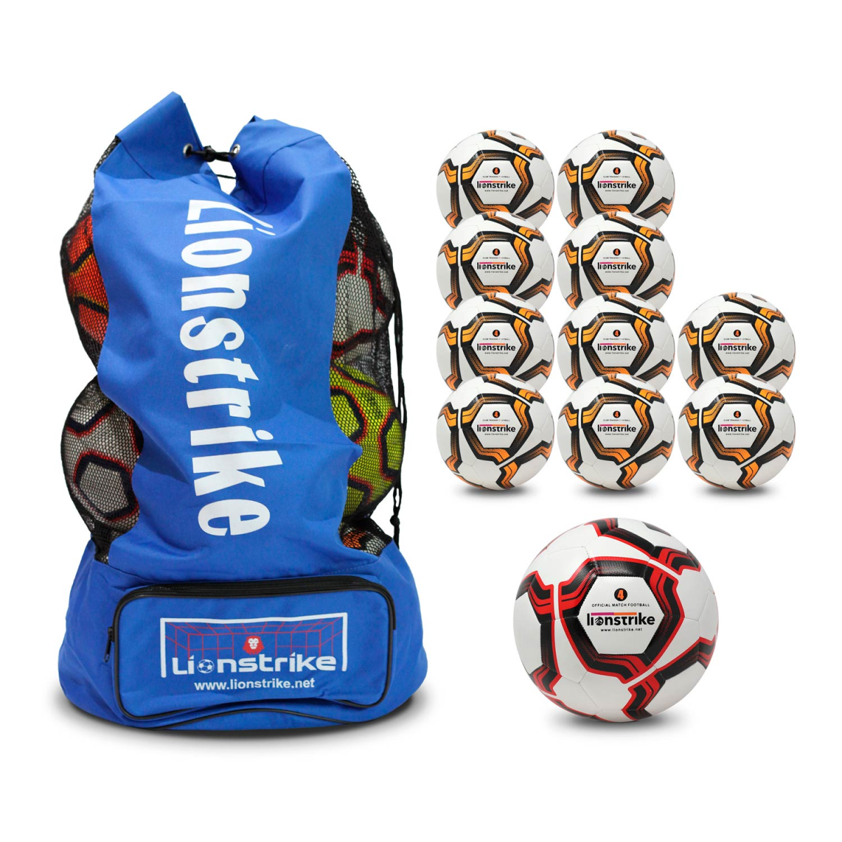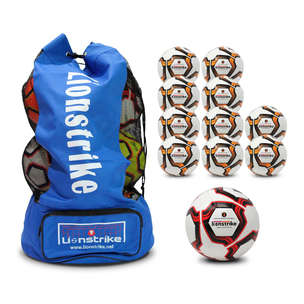 Lionstrike Matchday Multipacks are the best football training equipment package for football clubs and coaches, providing 10 Club balls, 1 Match ball and 1 Lionstrike football bag.